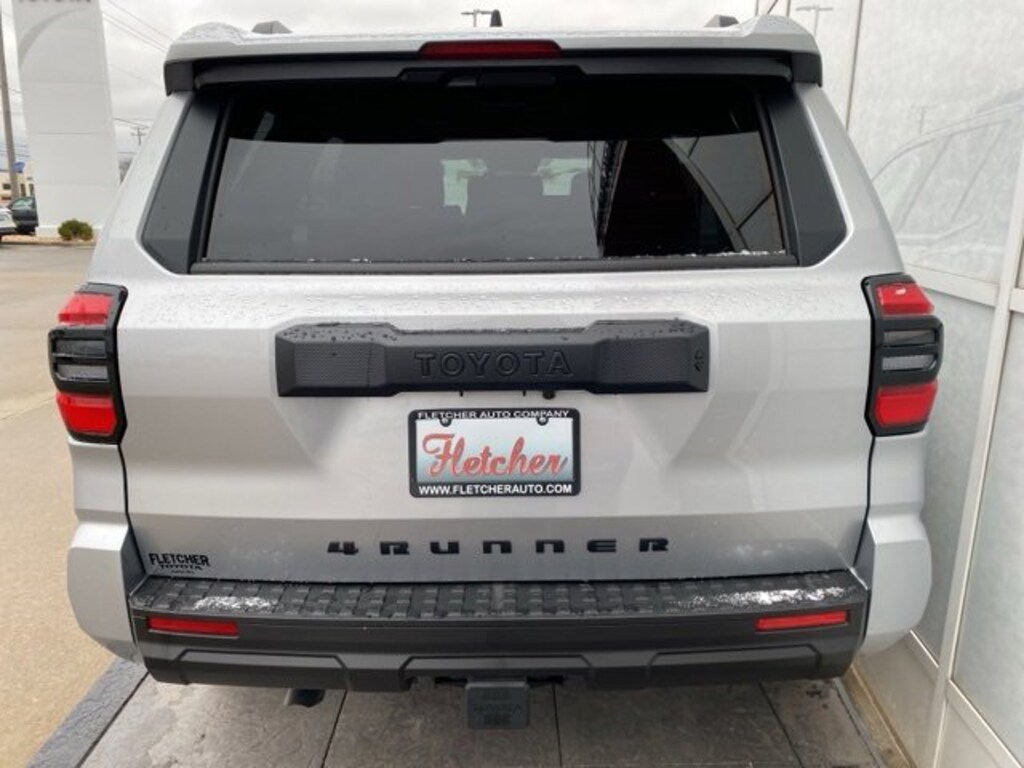- Black horizontal-bar grille, mirror caps, door handles, and overfenders; color-keyed rear spoiler; black "sr5" and "4runner" badges.